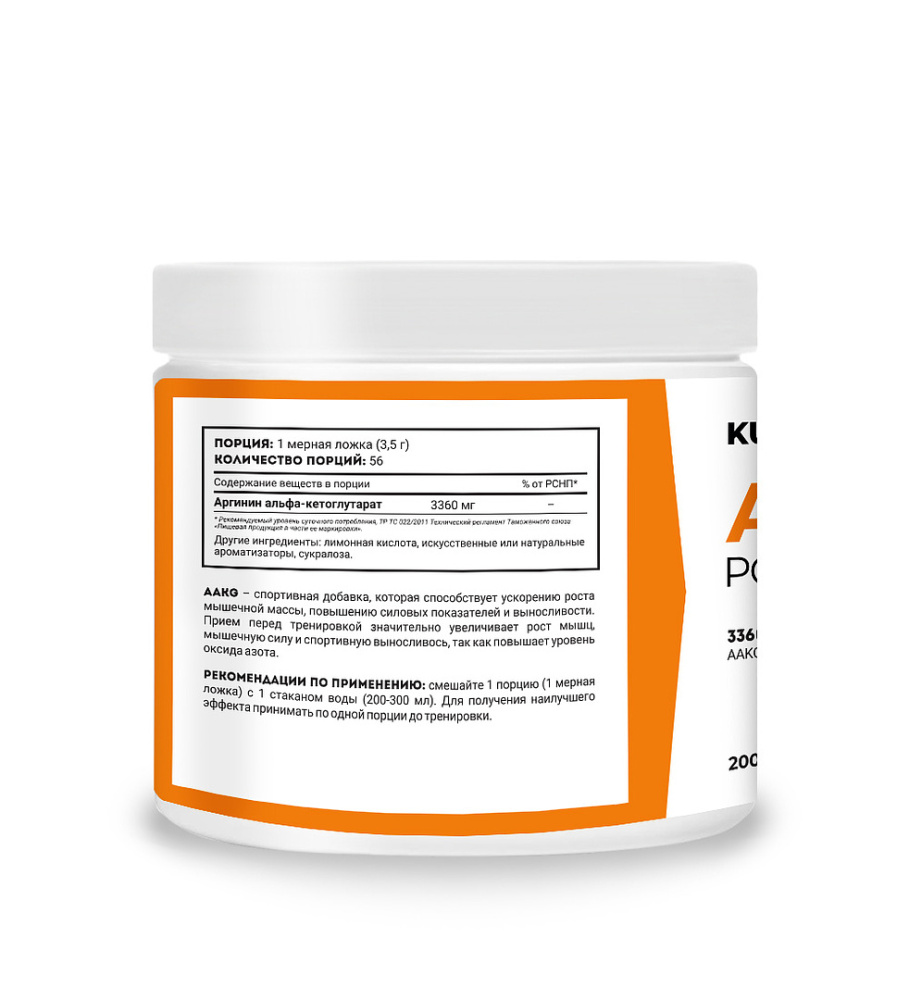 KULTLAB AAKG - спортивная добавка, которая способствует ускорению роста мышечной массы, повышению силовых показателей и выносливости. Приём перед тренировкой значительно увеличивает рост мышц, мышечную силу и спортивную выносливость, так как повышает уровень оксида азота.