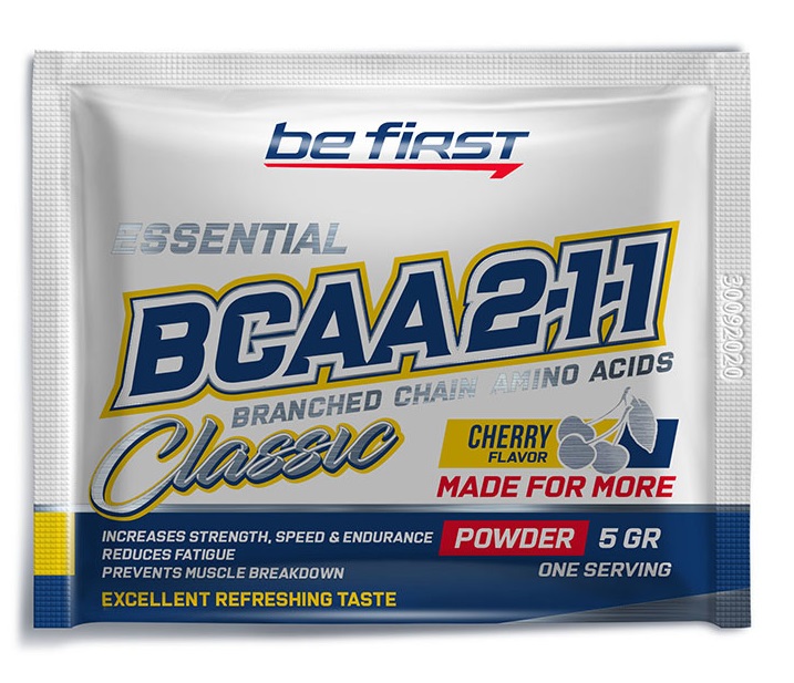 Be First BCAA 2:1:1 CLASSIC Powder - аминокислотный комплекс, включающий в себя 3 незаменимые аминокислоты: L-лейцин, L-изолейцин, L-валин в наилучшем классическом соотношении 2:1:1. Продукт производится с применением ингредиентов, не содержащих в составе добавки для улучшения растворимости.