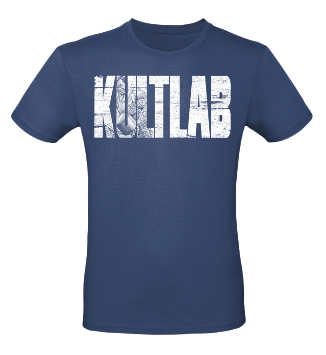 Kultlab Футболка мужская Бодибилдер (белый логотип), синяя - белая