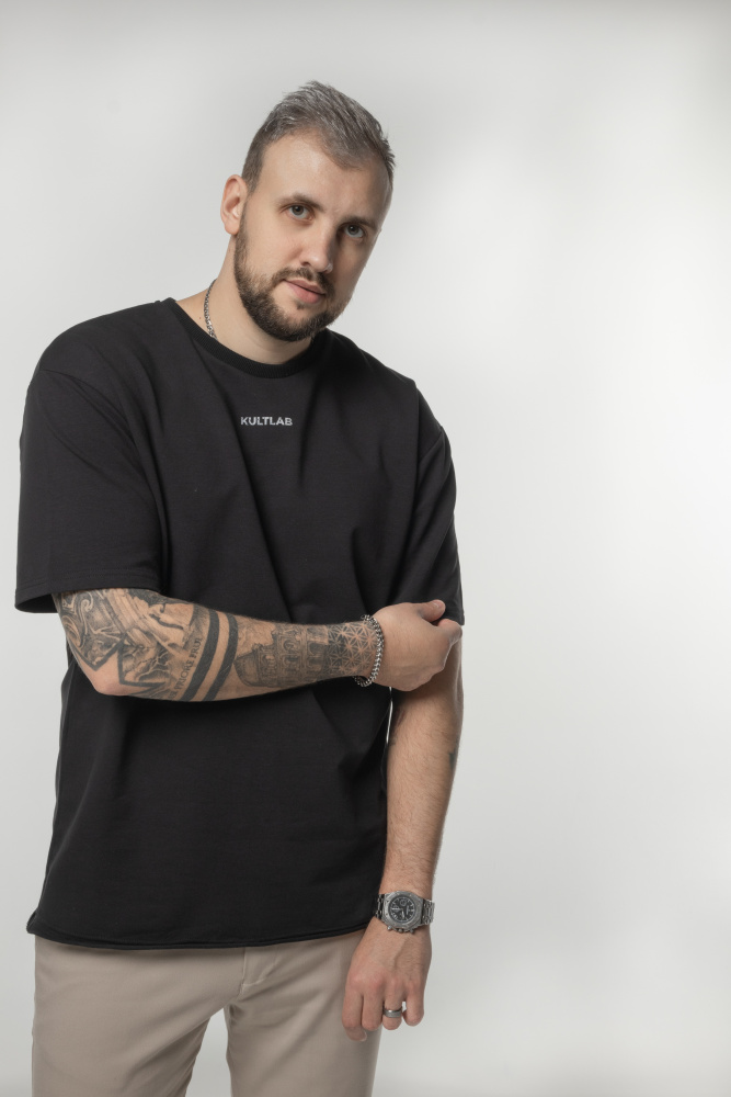 Kultlab Мужская футболка Oversize Merch, тёмный графит - белый кракелюр