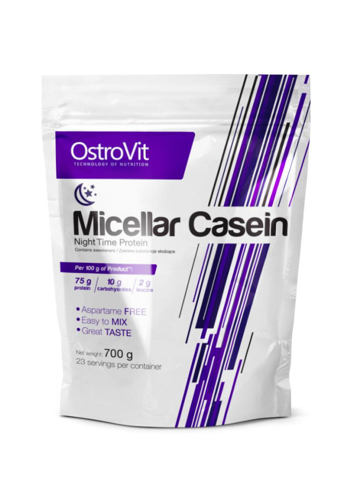 Благодаря более длительному перевариванию казеина (обычно данный процесс занимает от 5 до 7 часов) обеспечение организма необходимыми аминокислотами происходит в течение более продолжительного периода времени, чем при употреблении сывороточного протеина. Длительное высвобождение аминокислот делает протеиновую добавку Micellar Casein от OstroVit отличным средством для обеспечения мышечных тканей белком в ночной период времени.
