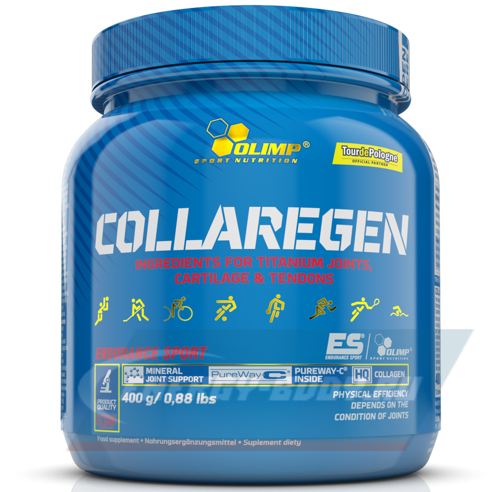 Collaregen Коллареген Olimp, 400 гр  - Collaregen™ пищевая добавка без сахара и подсластителей. Коллагеновый белок для укрепления соединительной ткани. Этот продукт содержит коллаген, основной компонент соединительной ткани, и инновационный, обладающий высокой абсорбцией микроэнкапсулированный Витамин С (PureWayC ®), который способствует нормальному образованию коллагена для нормального функционирования хрящей и костей.
