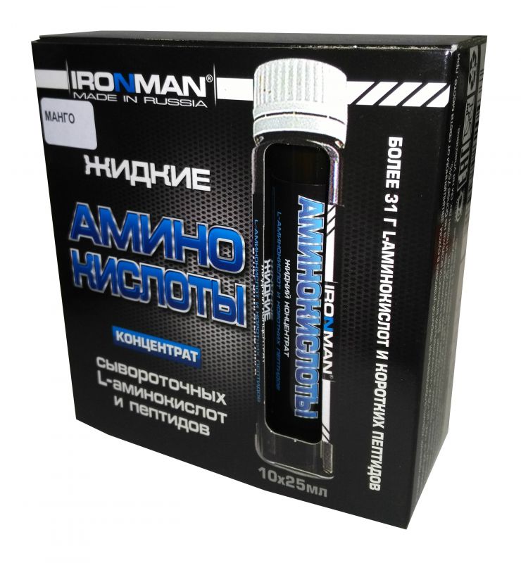 IIronman Жидкие Аминокислоты- высокотехнологичный анаболический продукт для профессионалов. Формула содержит быстродействующий и легкоусваиваемый комплекс сывороточных свободных аминокислот и пептидов, полученных путем естественного (нехимического) гидролиза сывороточного изолята. Такой процесс не дает вредных для человеческого организма D-форм аминокислот и вредных примесей. В качестве энергокомпоненты в комплекс добавлена фруктоза, препятствующая распаду мышечного белка при интенсивных нагрузках. Ironman Жидкие Аминокислоты обогащен комплексом витаминов и липотропиками- холином, инозитолом и L-Карнитином. Ironman Жидкие Аминокислоты - является высокоактивной средой для роста микроорганизмов, поэтому для лучшей сохранности, продукт, после вскрытия, необходимо хранить в холодильнике, не оставлять открытым. При соблюдении вышеперечисленных условий гарантируется сохранность вскрытого продукта в течении 2-х недель.