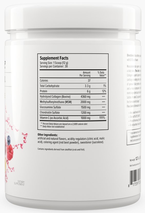 Flex Joint идеально подходит как для профилактики, так и для комплексного лечения болевых ощущений в связках и суставах. Продукт представляет собой порошок с оптимальной биодоступностью, отличной растворимостью и ярким натуральным вкусом.
