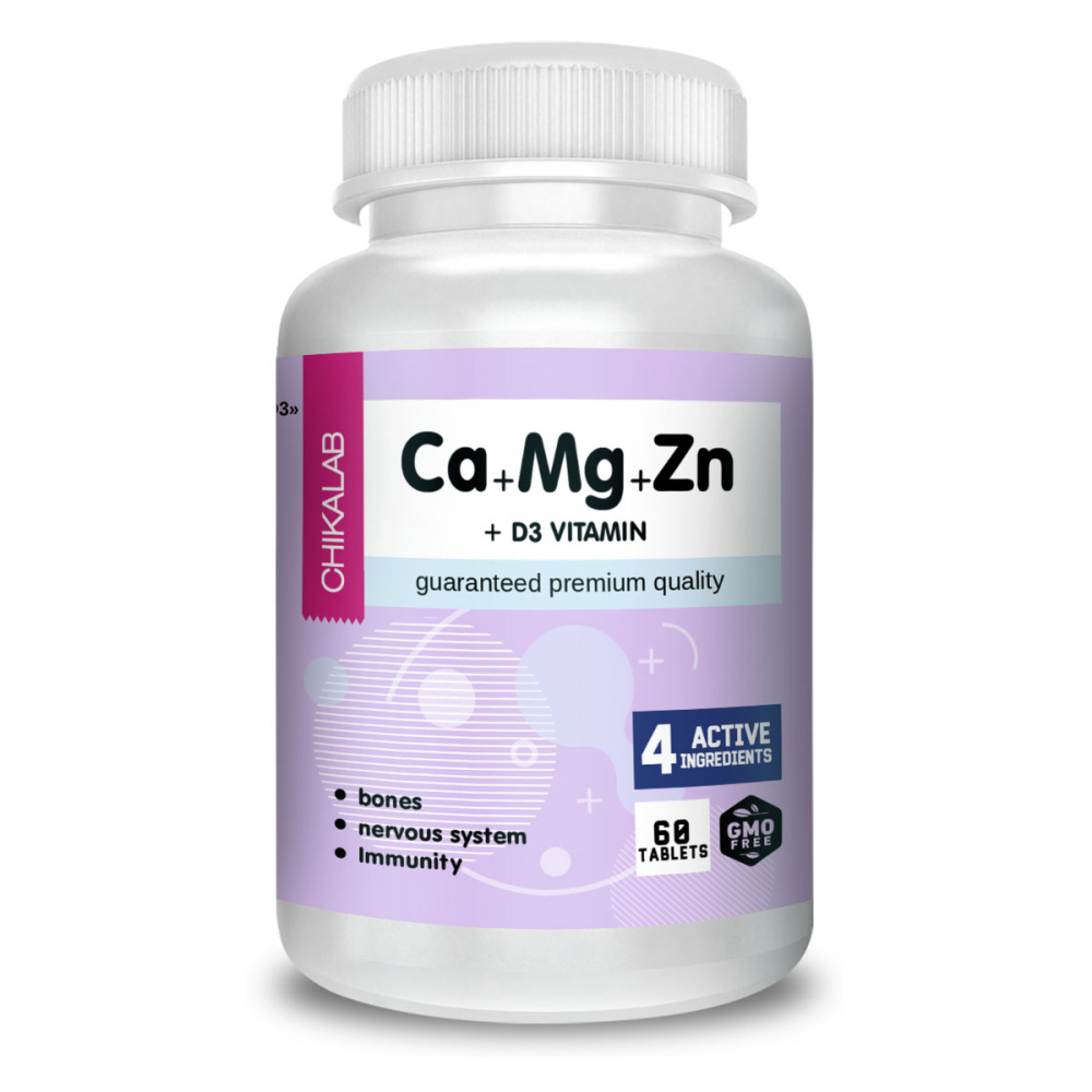Chikalab Ca+Mg+Zn with vitamins D3, 60 таб