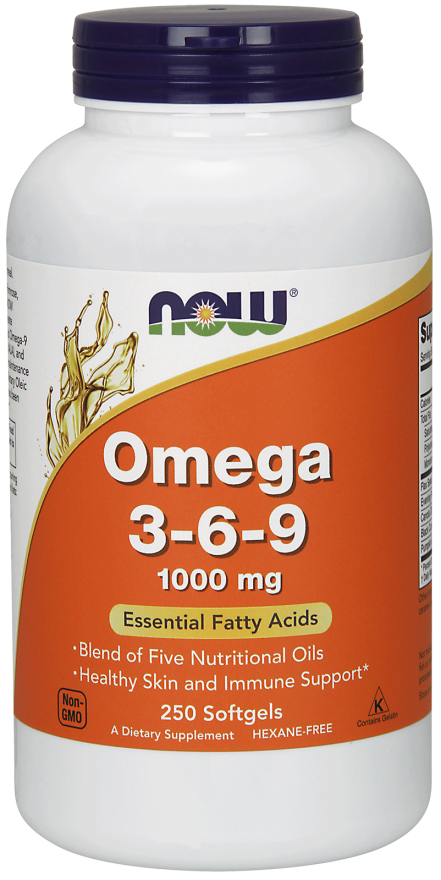 NOW Omega 3-6-9 обеспечивает сбалансированную смесь из двух незаменимых полиненасыщенных жирных кислот (и их производные), необходимых для многих функций организма: Омега-3 масла из льняного семени и рапса, и Омега-6 масло (GLA) от Primrose и черной смородины.