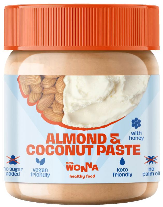 Mrs. Wonna заботливо приготовила миндально-кокосовую пасту к вашему завтраку или перекусу. А может, для вкусных десертов или кулинарных экспериментов? Нужна лишь ложка only!