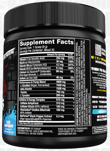 Mutant Madness поднимет вашу подготовку к тренировке на совершенно новый экстремальный уровень! Созданная исключительно для интенсивных тренировок, эта дополнительная формула премиум класса пробудит ваши скрытые силу и энергию. Мы предупреждаем Вас, совершенно серьёзно, прочитайте всю этикетку перед использованием, будьте внимательны!