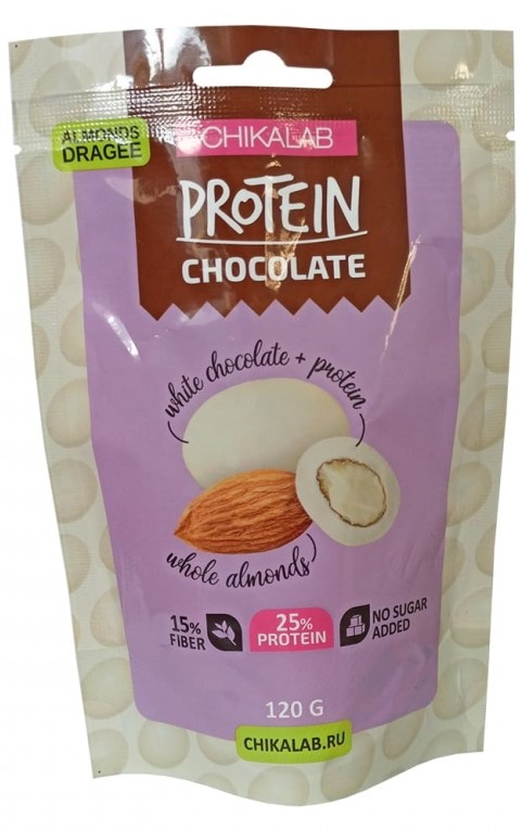 Абсолютная новинка в мире полезных перекусов - цельный миндаль, покрытый слоем протеина и обернутый в нежный белый шоколад.