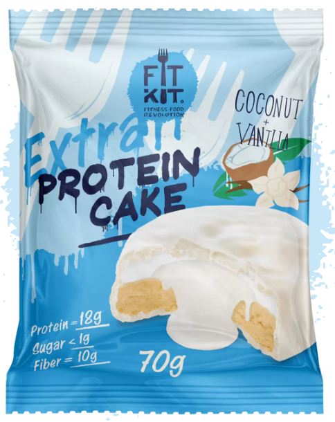 Fit Kit Protein Cake Extra – удобный перекус с продолжительным эффектом насыщения для полноценного и низкокалорийного питания. Продукт разработан для людей, которые ведут подвижный образ жизни и хотят всегда оставаться в отличной спортивной форме. Снек трёхслойный, весит 70 г. Это нежнейшая основа из белкового суфле, запечатанная вкуснейшей протеиновой глазурью. Fit Kit Protein Cake Extra – прекрасно устраняет голод., ведь здесь натуральный шоколад, орешки, изюм и ни грамма сахара. Отзывы о товаре исключительно положительные.