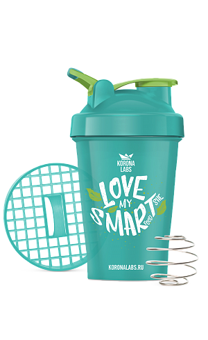 Фирменный спортивный шейкер Korona Labs для приготовления протеиновых коктейлей и предтренировочных напитков.