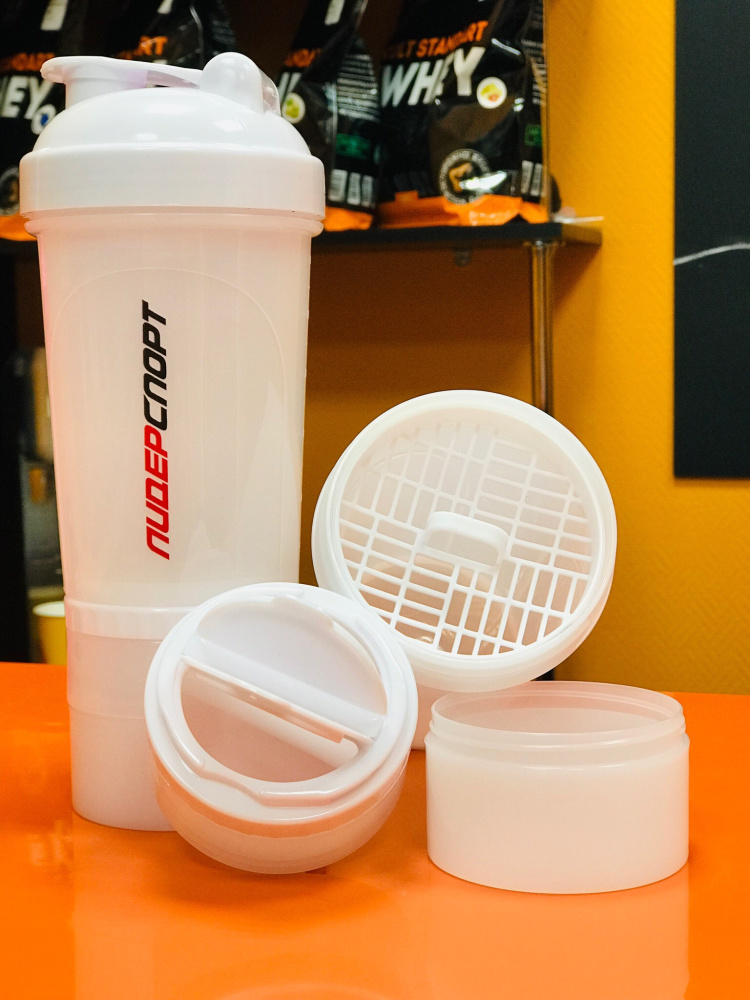 Шейкер с сеткой и двумя дополнительными контейнерами - для таблеток и сыпучих продуктов.
