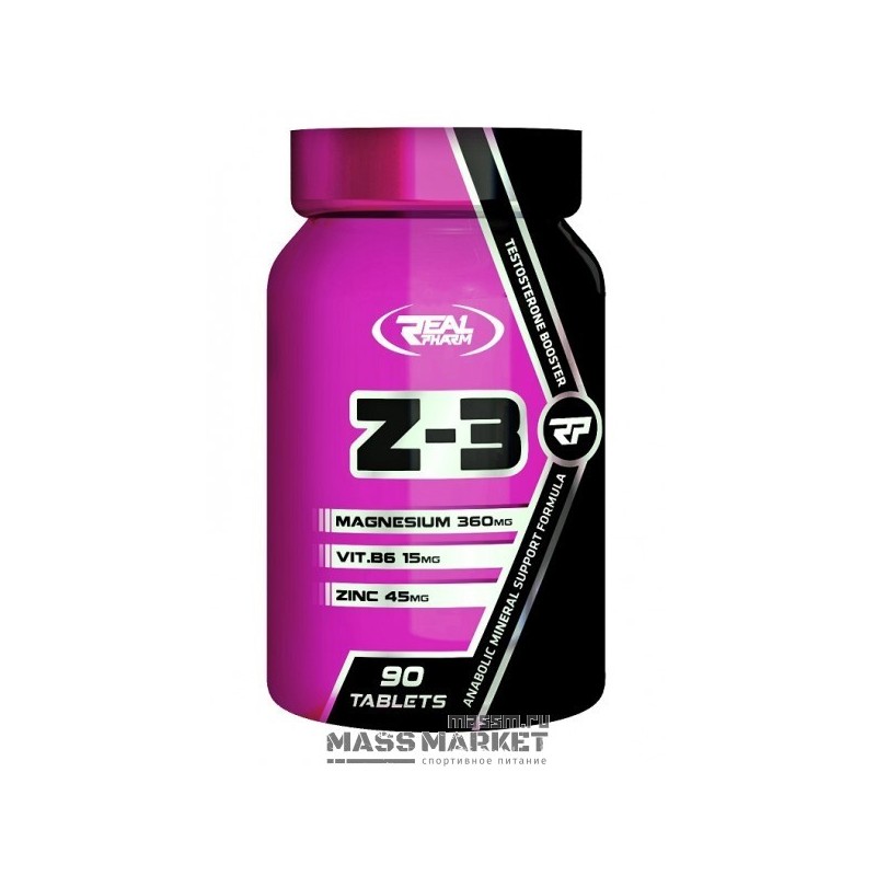 Real Pharm Z-3 - это еще один препарат, повышающий уровень тестостерона. Продукт имеет высокое качество и обладает положительным эффектом на регенерацию, а также уменьшает неконтролируемые сокращения мышц. Ограничения для людей в применении спортивного продукта не существует. Он может применяться как профессиональными спортсменами, так и активными людьми. В состав добавки входят: магний, цинк, витамин В6. Эти компоненты имеют ряд свойств, существенно влияющие на процессы в организме: