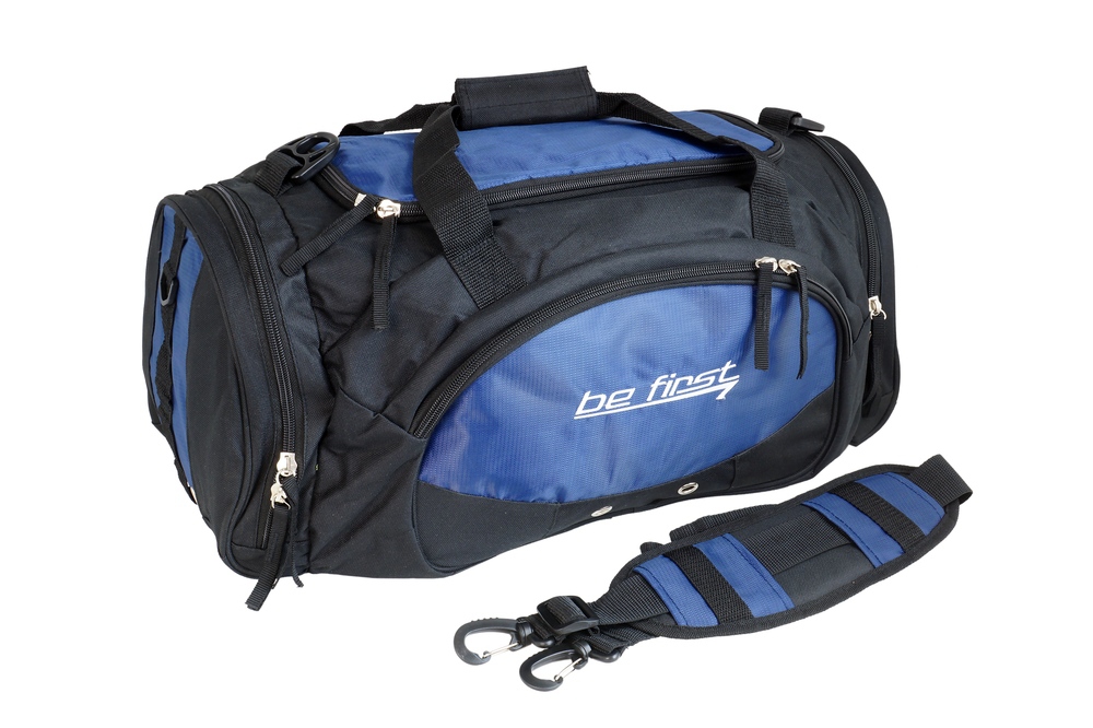 Спортивная сумка Be First - легкая, удобная качественная сумка, изготовленная из прочного нейлона. Имеет отделения для обуви, сухих и влажных вещей, отсек для MP3/CD плеера, выход для наушников.