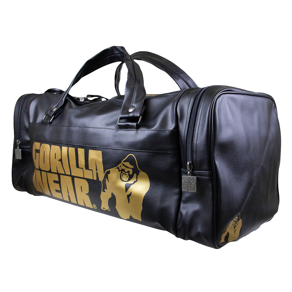Тренировочная сумка из высокопрочного материала с фирменным логотипом Gorilla Wear. Одно большое отделение для тренировочной одежды и два кармана на молнии по бокам. В комплекте регулируемый плечевой ремень.