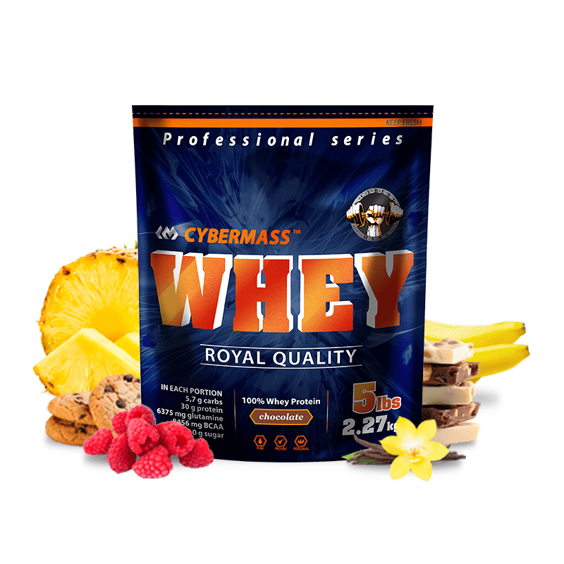 CYBERMASS WHEY - это прекрасный очень качественный высокобелковый коктейль. При этом Вы можете употреблять это спортивное питание, не задумываясь о лишнем весе, ведь в нем нет сахара, вместо сахара мы добавляем сухие соки. Наш секрет удивительного вкуса, заключен в кусочках шоколада и натуральных фруктов.