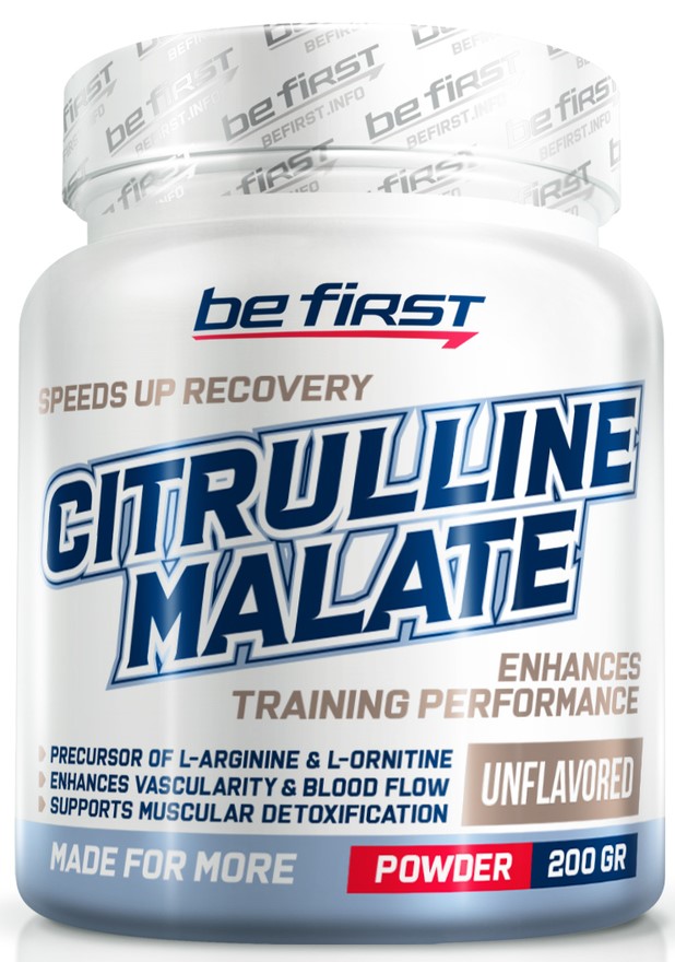 Цитруллин не относится к незаменимым аминокислотам, поэтому его прием не является строго обязательным. Но когда Вы достигли тренировочного плато, или просто решили увеличить объем тренировок – Citrulline Malate powder от Be First поможет Вам повысить производительность тренировок и ускорить рост.
