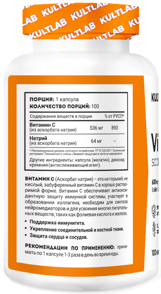 Аскорбат натрия (Витамин С) - это не горький, не кислый, забуференный витамин С в хорошо растворимой форме. Он необходим ждя производства коллагена(структурного белка, необходимого для здоровья соединительных тканей) и поэтому важен для здоровья кожи, костей и суставов. Он также необходим для метаболизма аминокислот, синтеза нейромедиаторов и усвоения многих питательных веществ, таких как фолиевая кислота и железо.