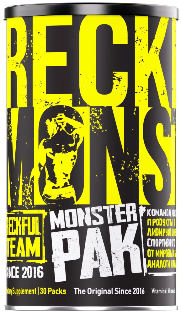 Monster Pak от Reckful - это мощный комплексный мультивитаминный продукт, созданный специально для серьезных атлетов и фитнес-энтузиастов, которые не хотят покупать несколько БАДов и планировать их прием. Благодаря фасовке в виде пакетов, вы никогда не забудете выпить нужную таблетку, т.к. в пакете уже есть все 6 таблеток, которые необходимо выпить в течение дня.