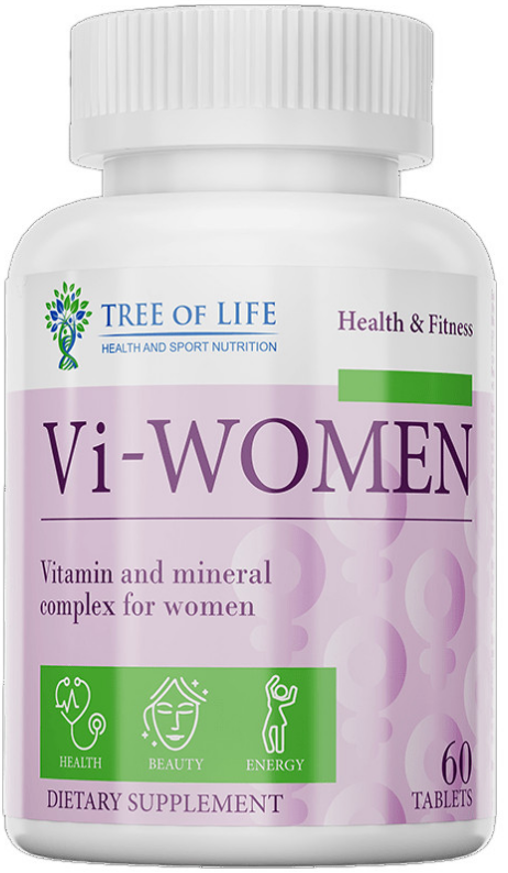 Vi-Women – это специально разработанный комплекс витаминов и минералов, предназначенный для удовлетворения уникальных потребностей женского организма. Эта добавка представляет собой источник витаминов А, С, D3, Е, К1, а также всего комплекса витаминов группы В: В1, В2, В3, В5, В6, В7, В9, В12. Кроме того, в её состав входят такие необходимые минералы, как железо, цинк, медь, марганец, молибден, йод, селен, хром, ванадий, фтор, бор и кобальт.