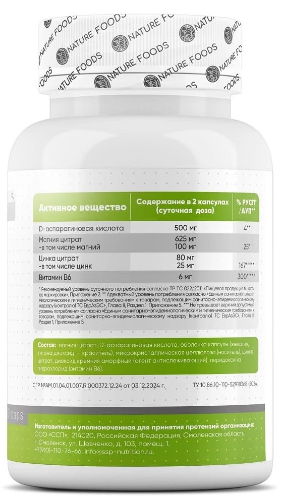 Nature Foods ZMA - это мощная формула на основе цинка, магния и витамина B6, разработанная для поддержки физической активности, ускоренного восстановления и улучшения качества сна. Комплекс помогает нормализовать гормональный баланс, повысить выносливость и способствовать мышечному росту.